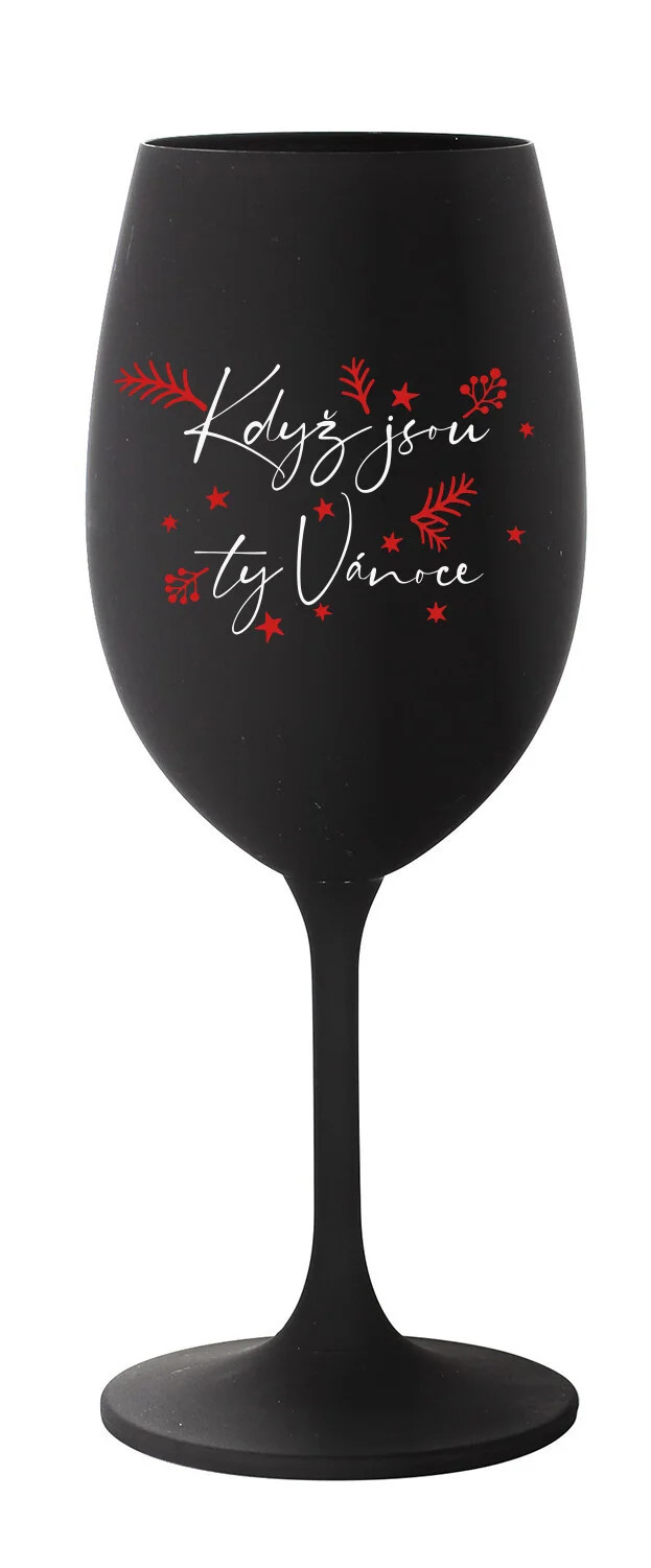 KDYŽ JSOU TY VÁNOCE - černá sklenice na víno 350 ml