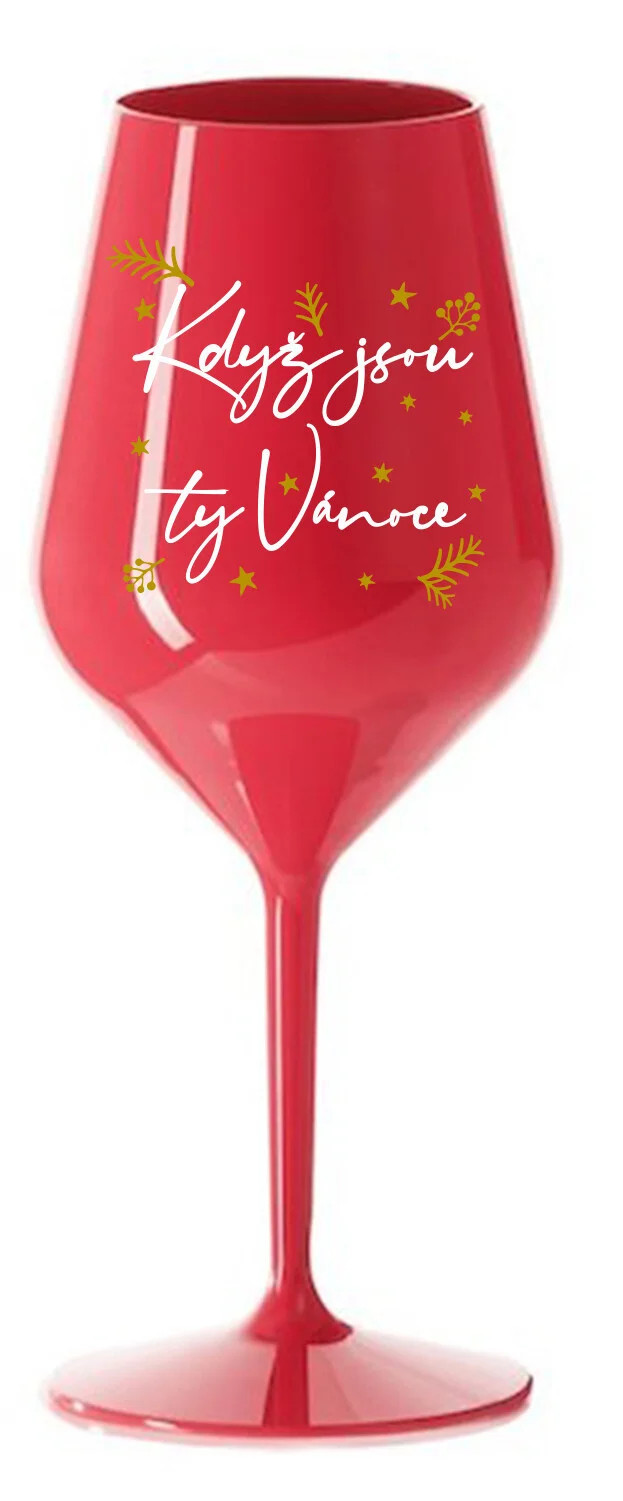 KDYŽ JSOU TY VÁNOCE - červená nerozbitná sklenice na víno 470 ml