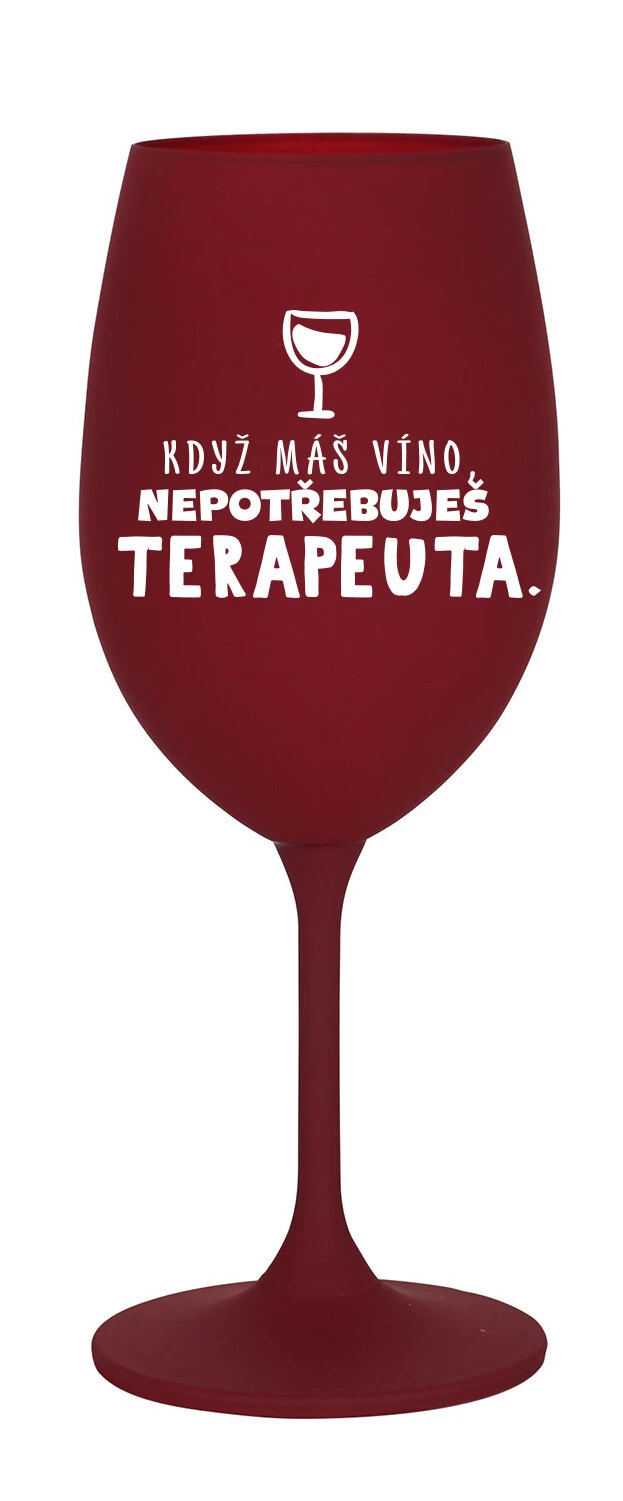 KDYŽ MÁŠ VÍNO, NEPOTŘEBUJEŠ TERAPEUTA - bordó sklenice na víno 350 ml