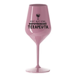 KDYŽ MÁŠ VÍNO, NEPOTŘEBUJEŠ TERAPEUTA - světle růžová nerozbitná sklenice na víno 470 ml