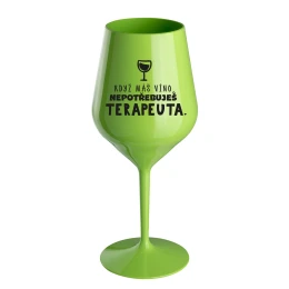 KDYŽ MÁŠ VÍNO, NEPOTŘEBUJEŠ TERAPEUTA - zelená nerozbitná sklenice na víno 470 ml