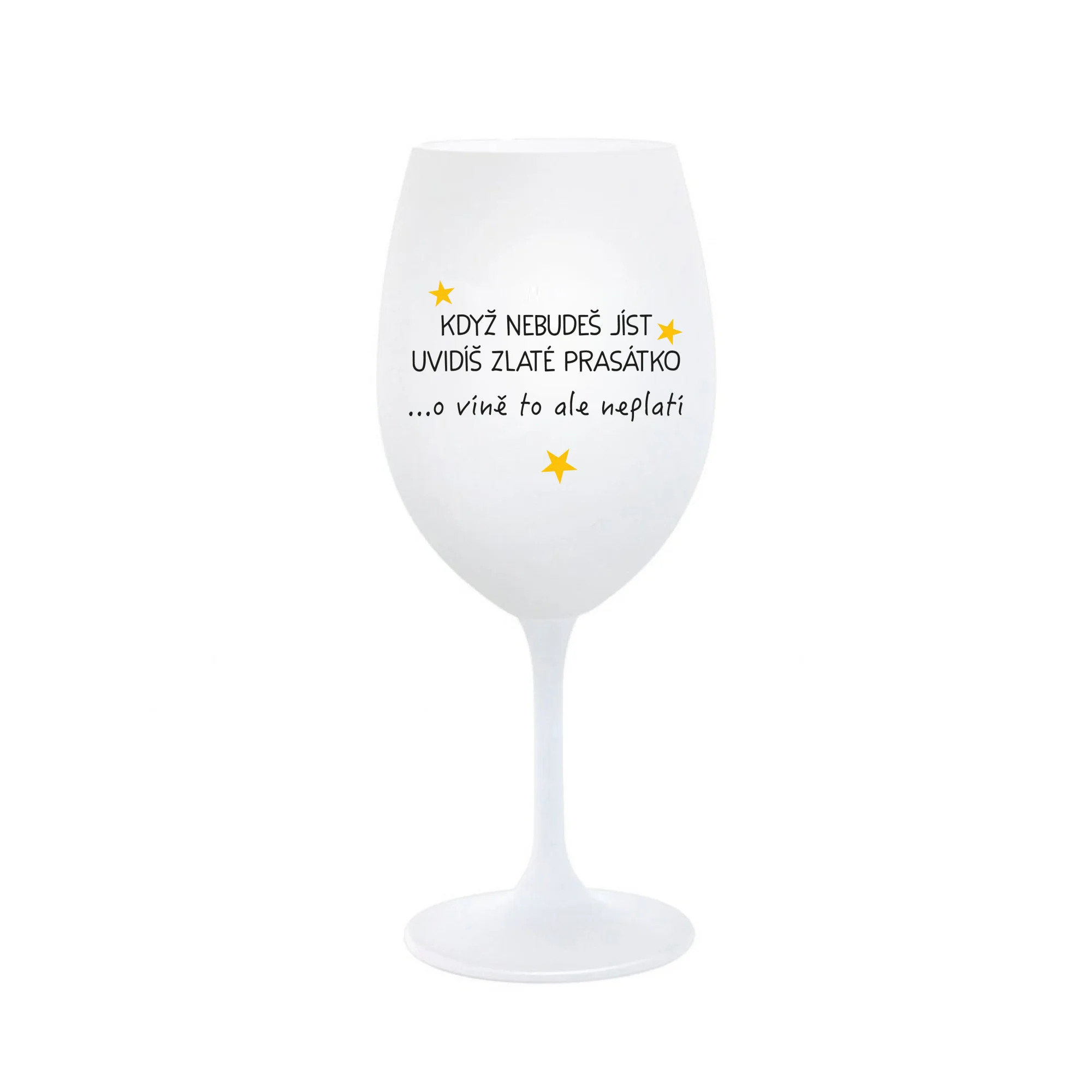 KDYŽ NEBUDEŠ JÍST, UVIDÍŠ ZLATÉ PRASÁTKO - bílá sklenice na víno 350 ml