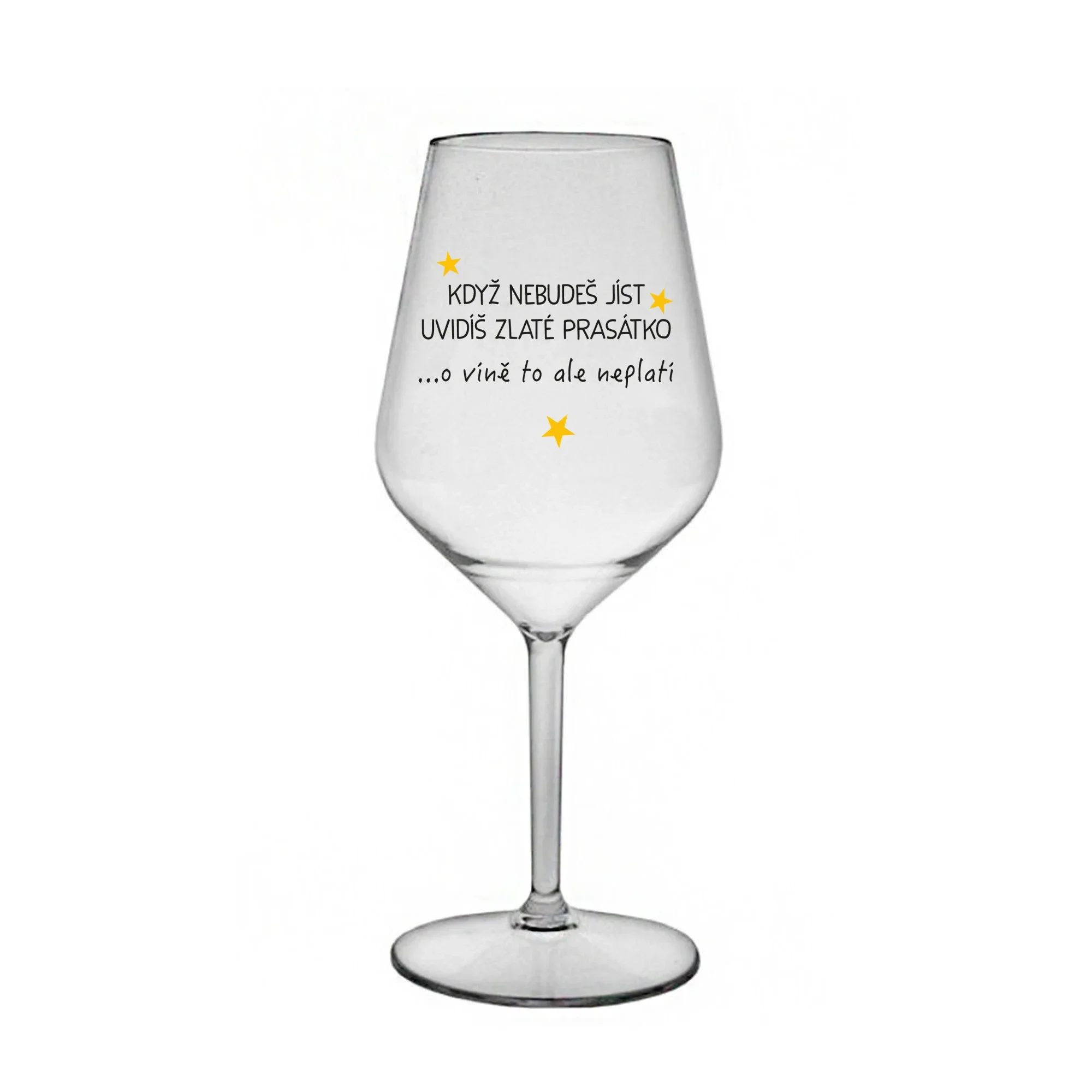 KDYŽ NEBUDEŠ JÍST, UVIDÍŠ ZLATÉ PRASÁTKO - čirá nerozbitná sklenice na víno 470 ml