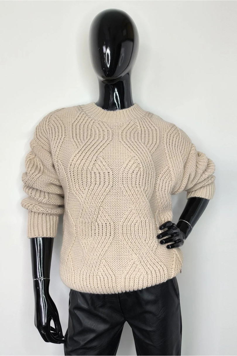 Svetr Kemi je ideální volbou pro chladnější dny pro ty, kteří si cení pohodlí, stylu a nadčasové elegance. Je vyroben z měkkého, na dotek příjemného úpletu s nápadnou prostorovou vazbou a zajišťuje vysoký komfort nošení a vynikající tepelnou izolaci.