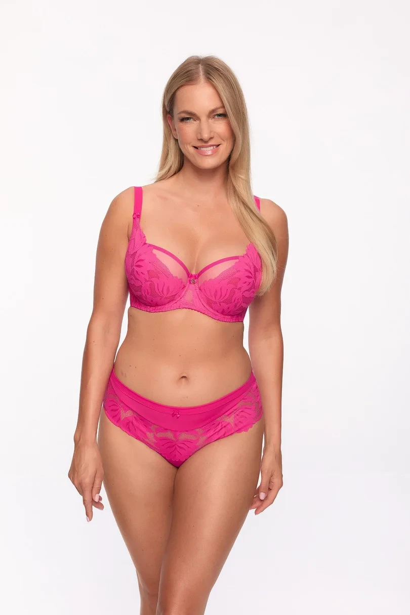 Podprsenka GAIA KETO 1134 ve fuchsiové barvě je kombinací klasiky, elegance a pohodlí. Je vyrobena z vysoce kvalitní krajky a hladkého mikrovlákna a poskytuje dokonalé přizpůsobení postavě a maximální pohodlí po celý den. Krajkové vsadky dodávají spodnímu prádlu smyslný nádech, zatímco elastická úprava zaručuje netlačení a pohodlí při nošení. Přidaná bavlněná vnitřní vložka zvyšuje hygienu a prodyšnost, takže je ideální volbou pro každou příležitost.