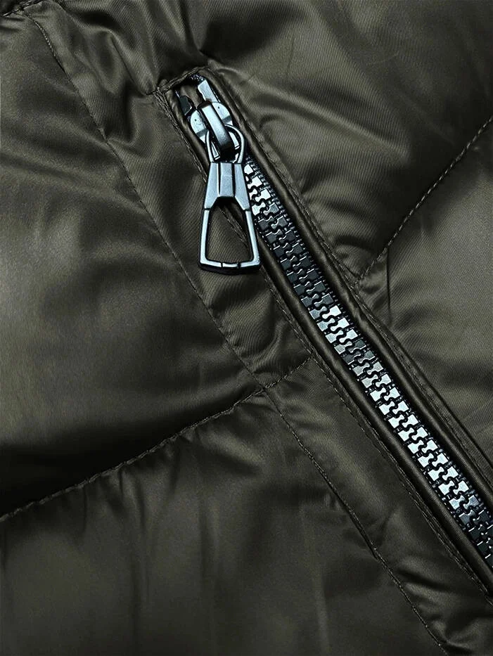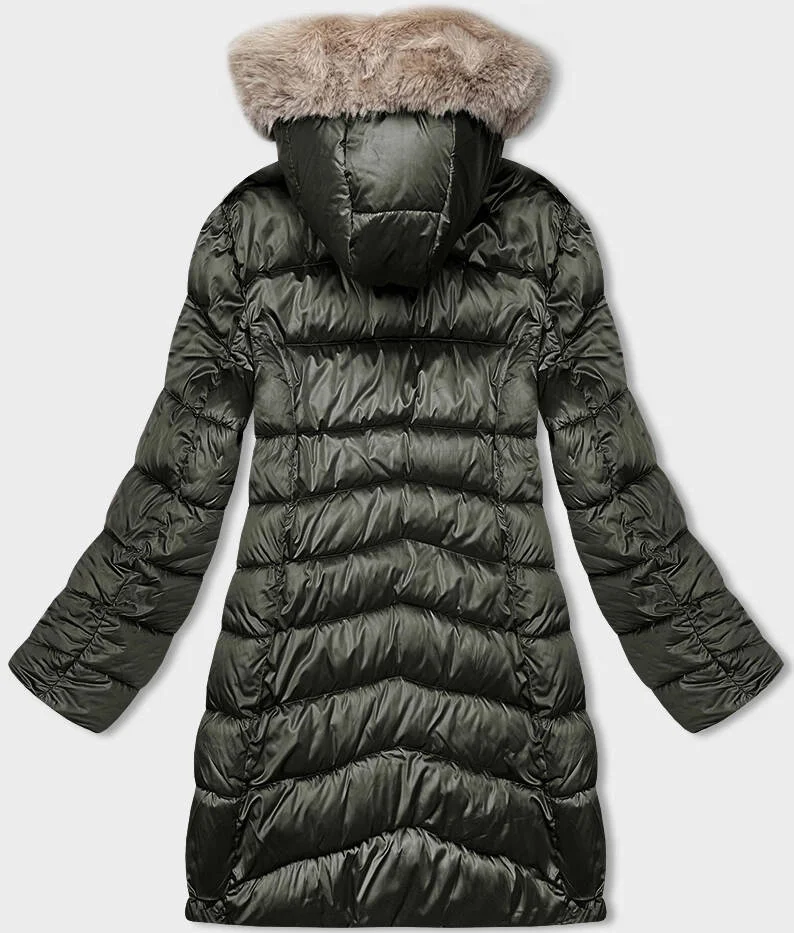 Khaki-béžová dámská oboustranná zimní bunda s kapucí (B8203-11046)