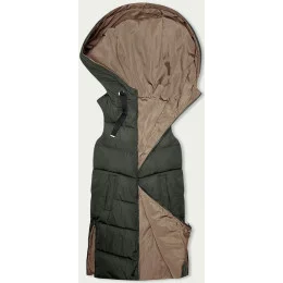 Khaki-béžová dlouhá dámská oboustranná vesta (B8159-11)