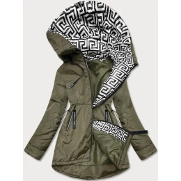 Khaki-bílá dámská bunda pro přechodné období (B8037-11026)