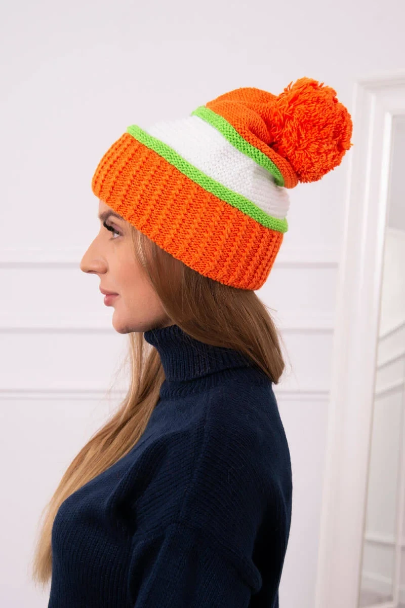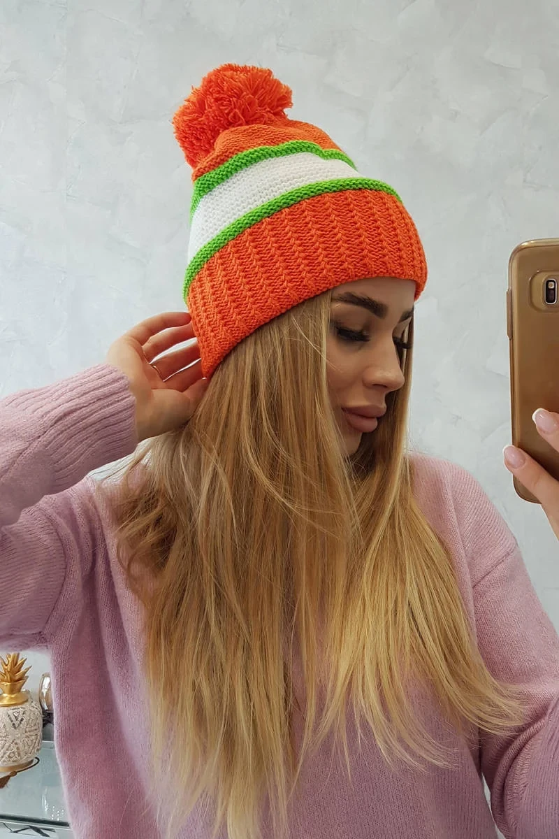 Kinga dámská čepice K297 oranžová+zelená neon+bílá