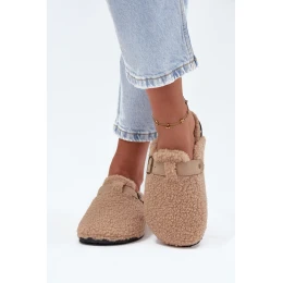 Klapki Damskie Z Futerkiem Typu Baranek Beżowe Lorivine