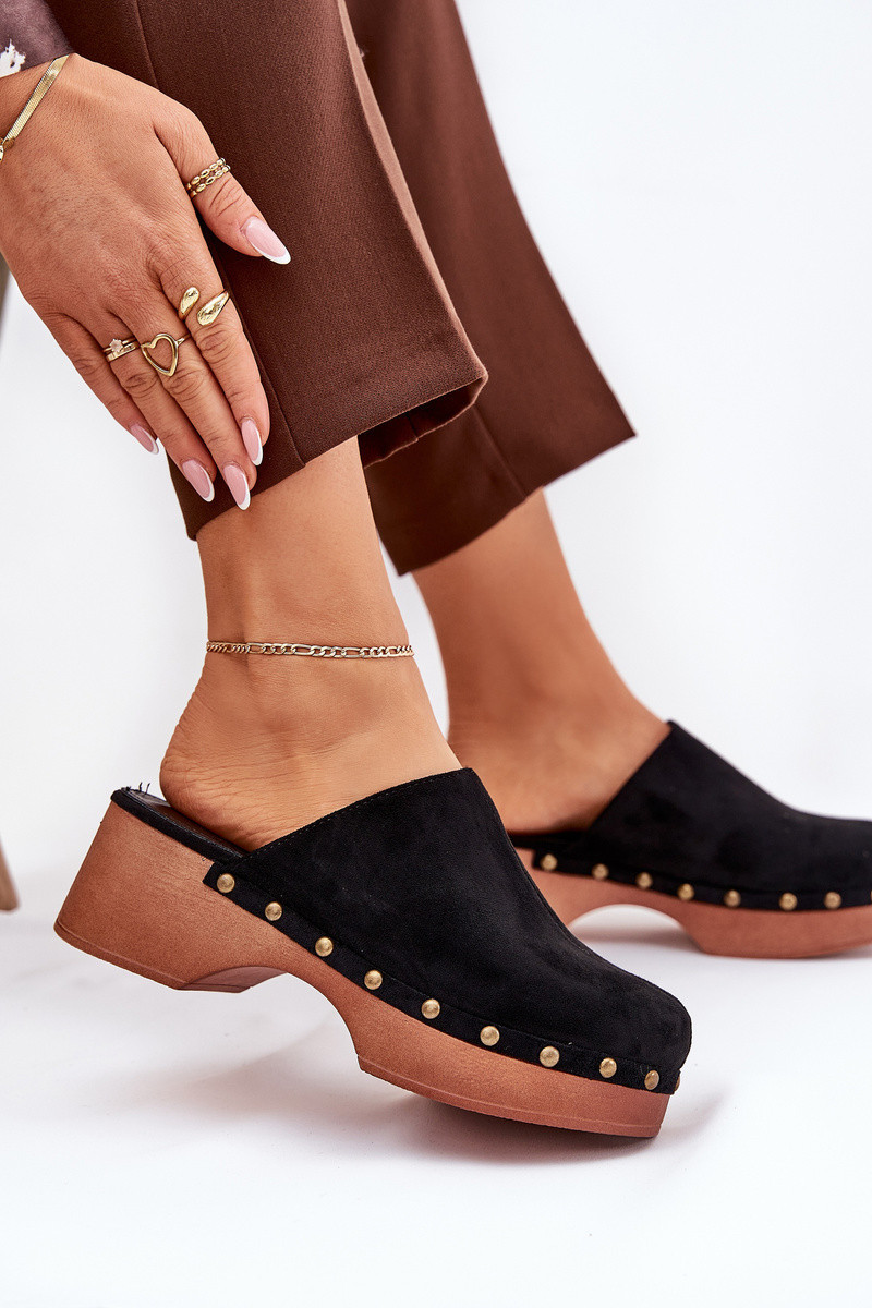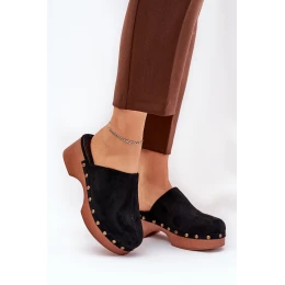 Lehké dámské sandály vyrobené z eko semiše. Usazené na platformě a klínu. Ozdobené cvočky, které jim dodávají módní a jedinečný charakter. Uvnitř se nachází měkká eko kožená vložka, která zaručuje pohodlí po celý den. Sandály mají zakryté, zaoblené špičky. Ideální na každodenní nošení, skvěle se hodí k letním šatům, sukním a kalhotám. Při výběru velikosti se řiďte tabulkou velikostí.