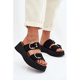 Dámské pantofle vyrobené z eko semiše jsou stylovou a pohodlnou volbou na teplé dny. Model umístěný na platformě zajišťuje komfort při chůzi a jemně zvedá siluetu. Dekorativní spony dodávají obuvi módní charakter a představují efektní dekorativní prvek. Měkká stélka zvyšuje pohodlí při nošení, zaručujíc komfort během každodenního nošení.