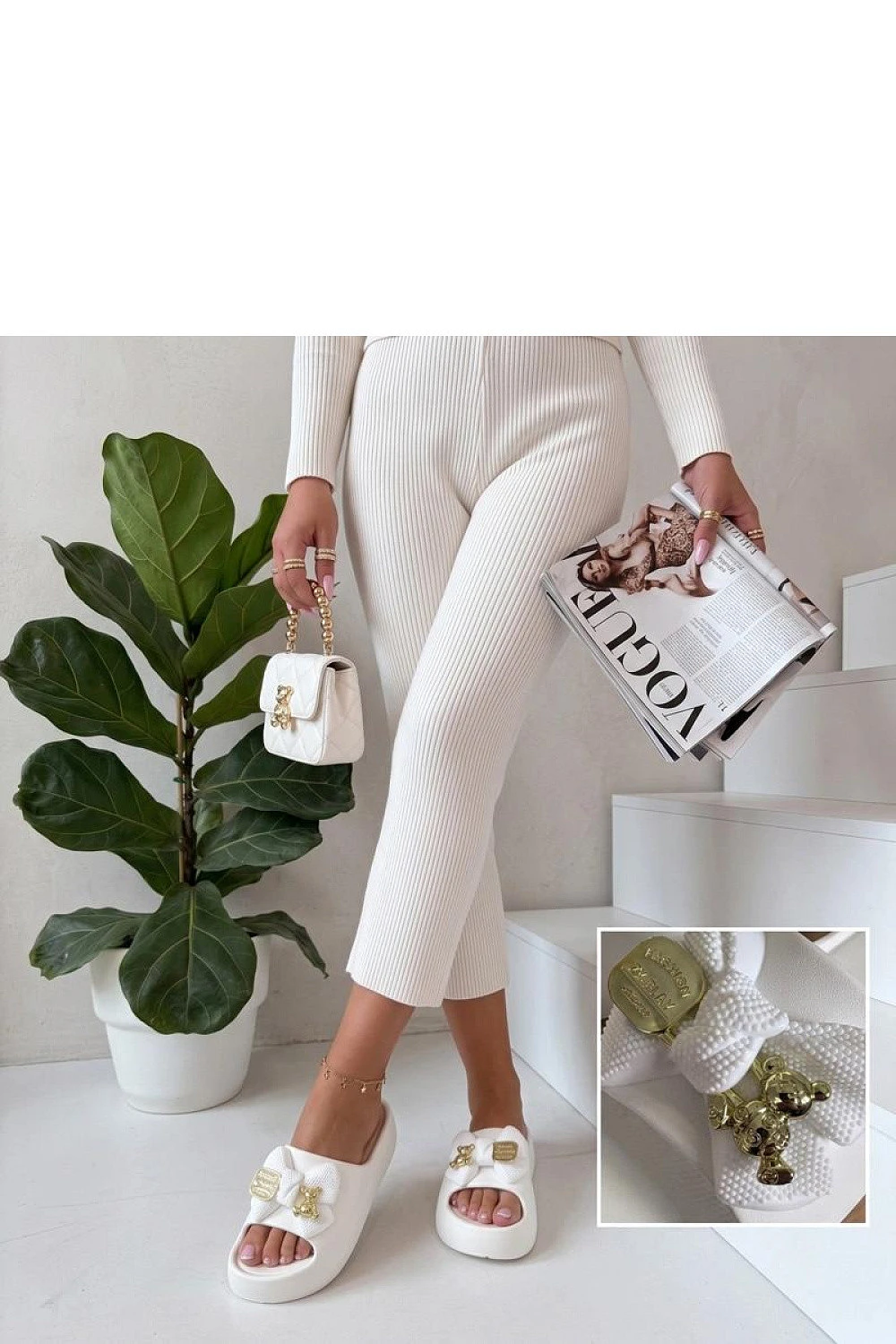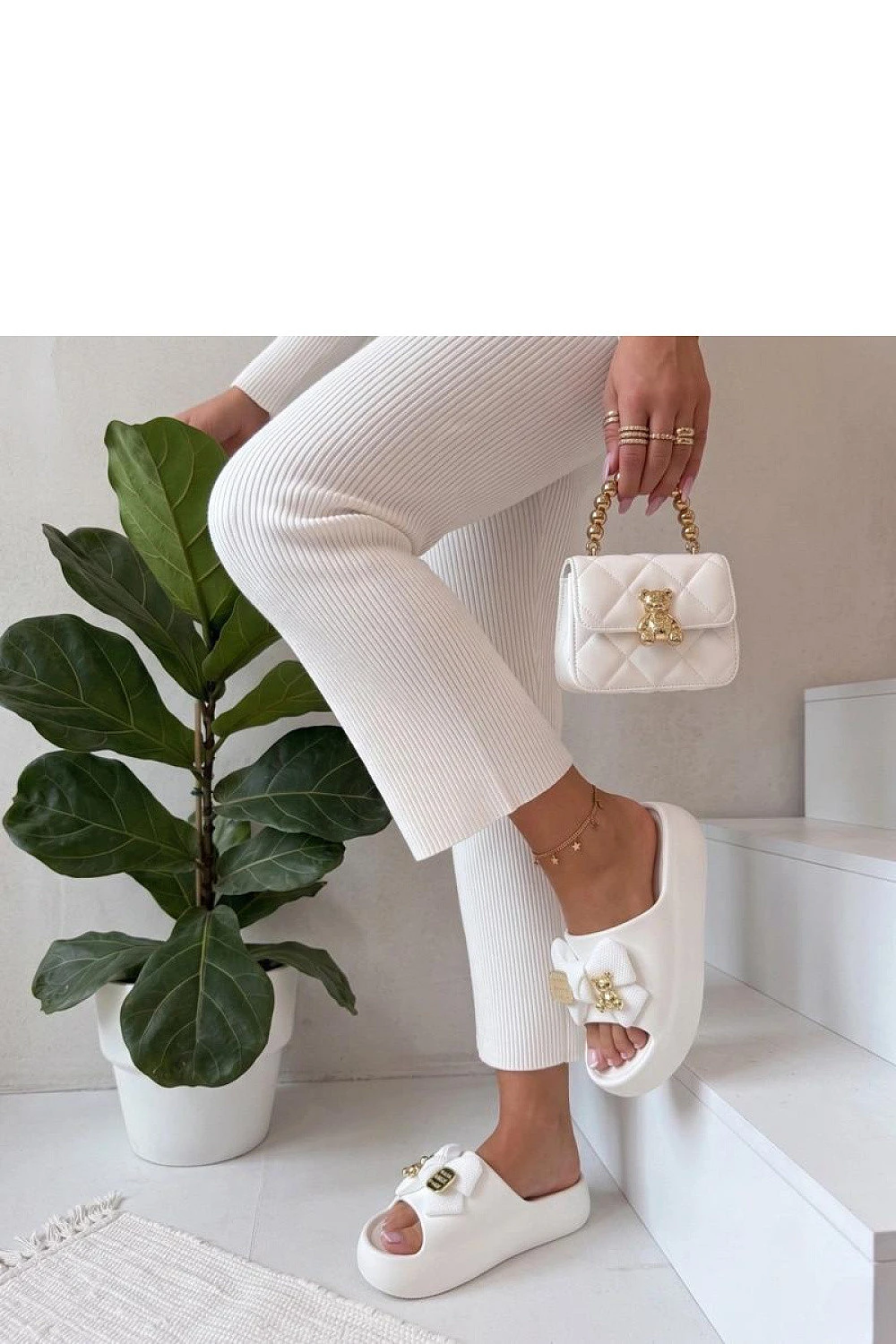 Elegantní pantofle s dekorativní mašlí jsou ideální kombinací pohodlí a módního vzhledu. Vyrobené z odolného umělého materiálu, skvěle se hodí na každodenní nošení doma i během letních procházek nebo výletů. Zasouvací konstrukce zajišťuje rychlé a pohodlné obutí, a měkká vložka z umělého materiálu zvyšuje pohodlí i při delším nošení. Model je umístěn na stabilní platformě o výšce 5 cm, která jemně zdvihne postavu a dodá lehkost každému outfitu. Je to praktická a stylová volba pro ženy, které oceňují pohodlí s nádechem elegance.