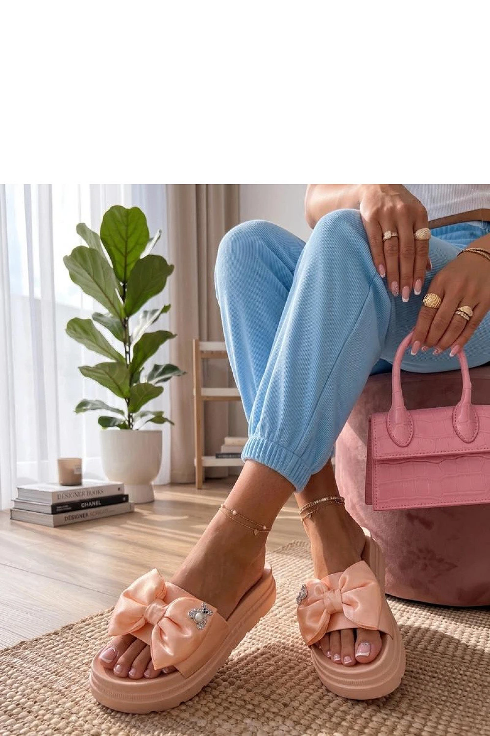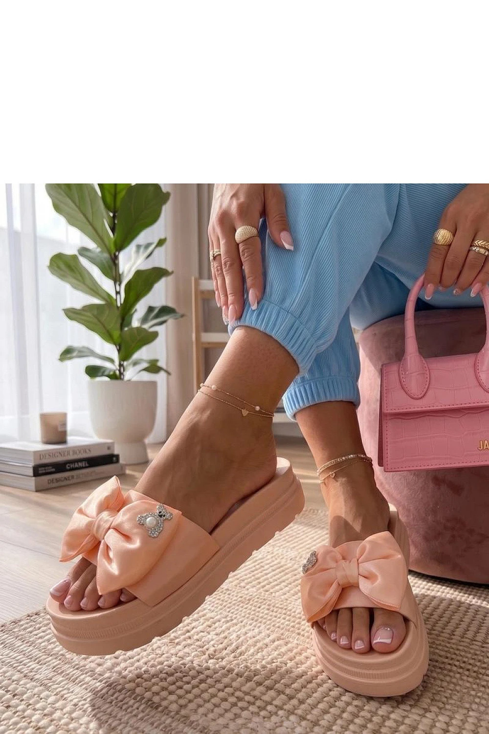 Elegantní pantofle s ozdobnou mašlí jsou ideální volbou pro teplé dny pro lidi, kteří ocení pohodlí a módní vzhled. Vyrobené z odolného umělého materiálu, jsou lehké, snadno se udržují a skvěle se hodí jak doma, tak venku. Šoupavý střih umožňuje rychlé a bezproblémové obutí, a stélka z umělého materiálu zajistí pohodlí při každodenním nošení. Model je umístěn na stabilní platformě o výšce 5 cm, která jemně zdvihne postavu a dodá moderní charakter. Jsou to praktické a stylové pantofle, které skvěle doplní letní outfit.