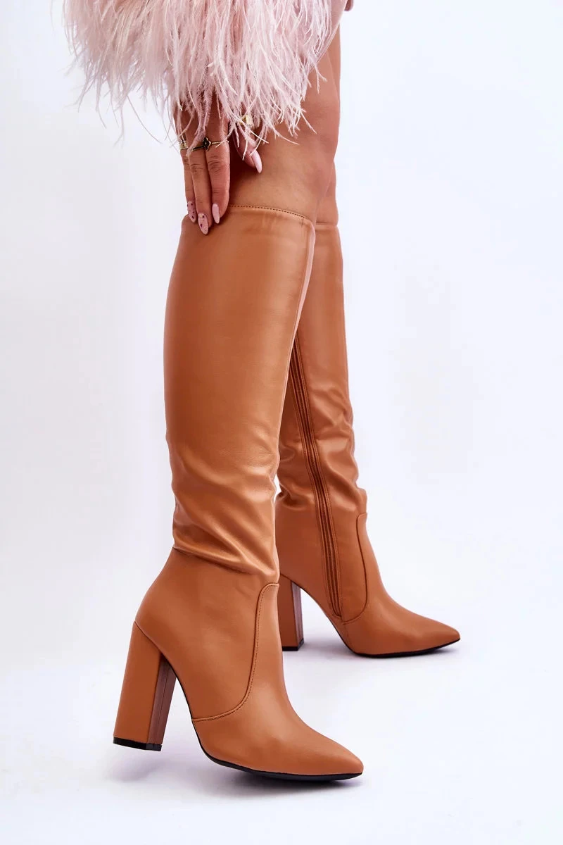 Klasické kozačky na vysokém podpatku z eko kůže. Boty mají špičatou špičku. Zapínání na zip po celé výšce svršku. Mají pevnou patu. Podpatek v podobě sloupku zvedne postavu a opticky prodlouží nohy. Stélka je vyrobena z eko kůže. Tento model se bude skvěle hodit k mnoha stylům. Při výběru velikosti použijte tabulku velikostí.