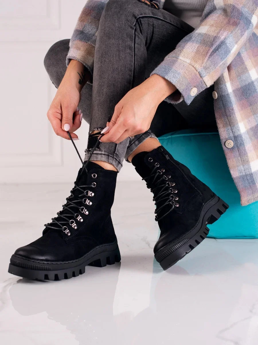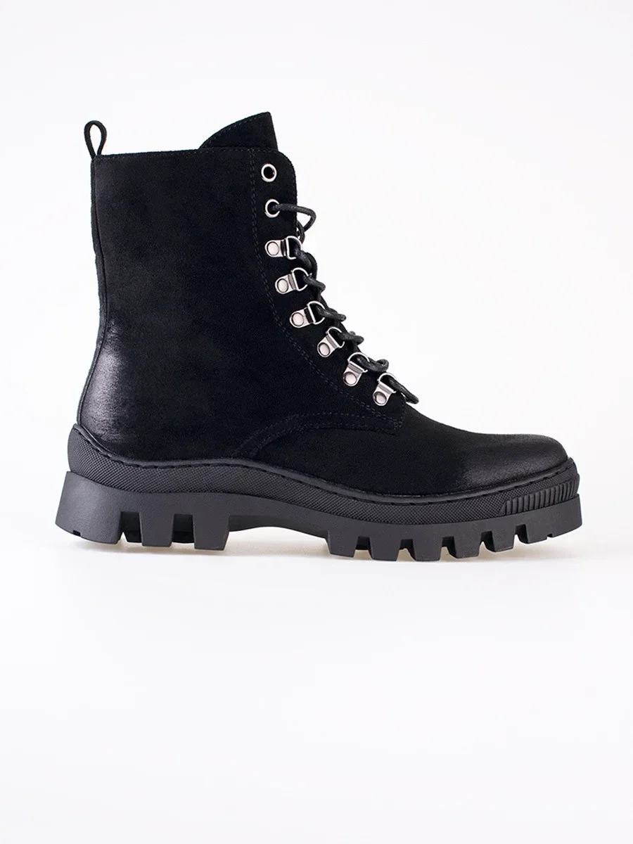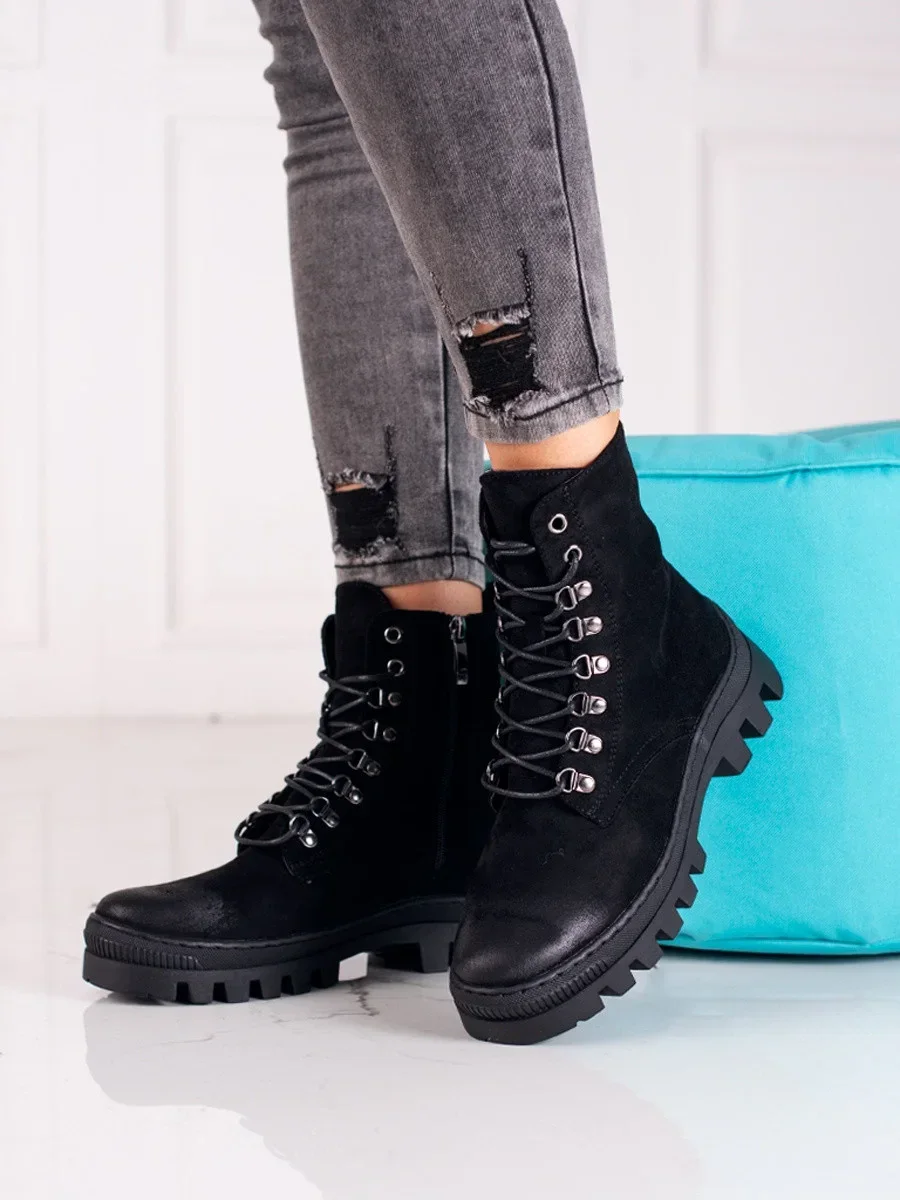 Klasické dámské černé kotníčkové boty na plochém podpatku
