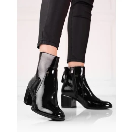 Klasické dámské černé kotníčkové boty na širokém podpatku