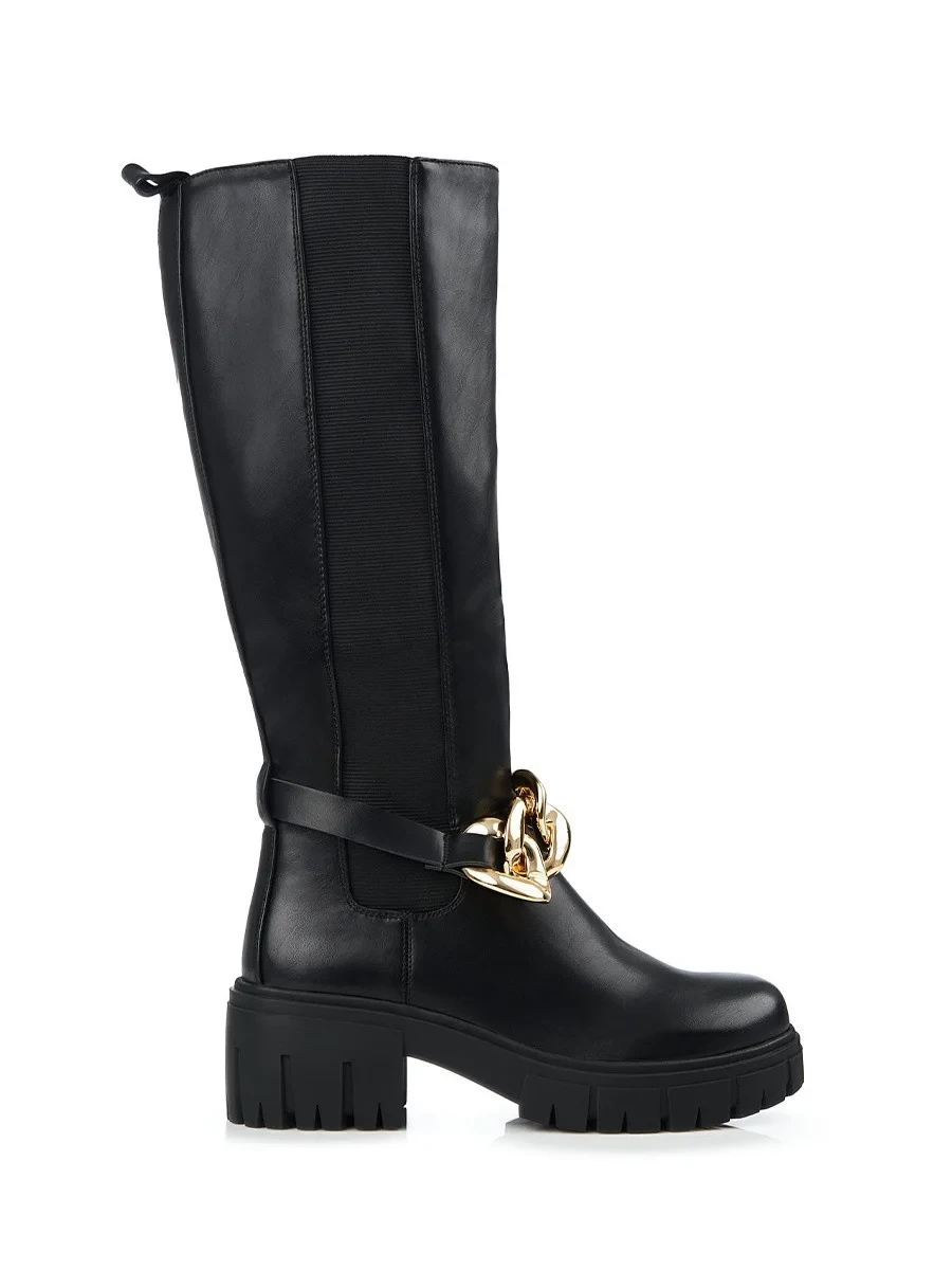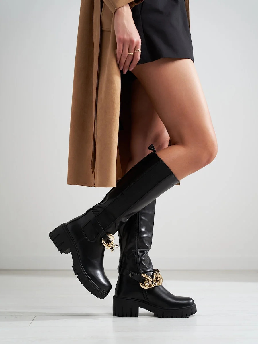 Přidání recenze k Klasické dámské černé kozačky na plochém podpatku