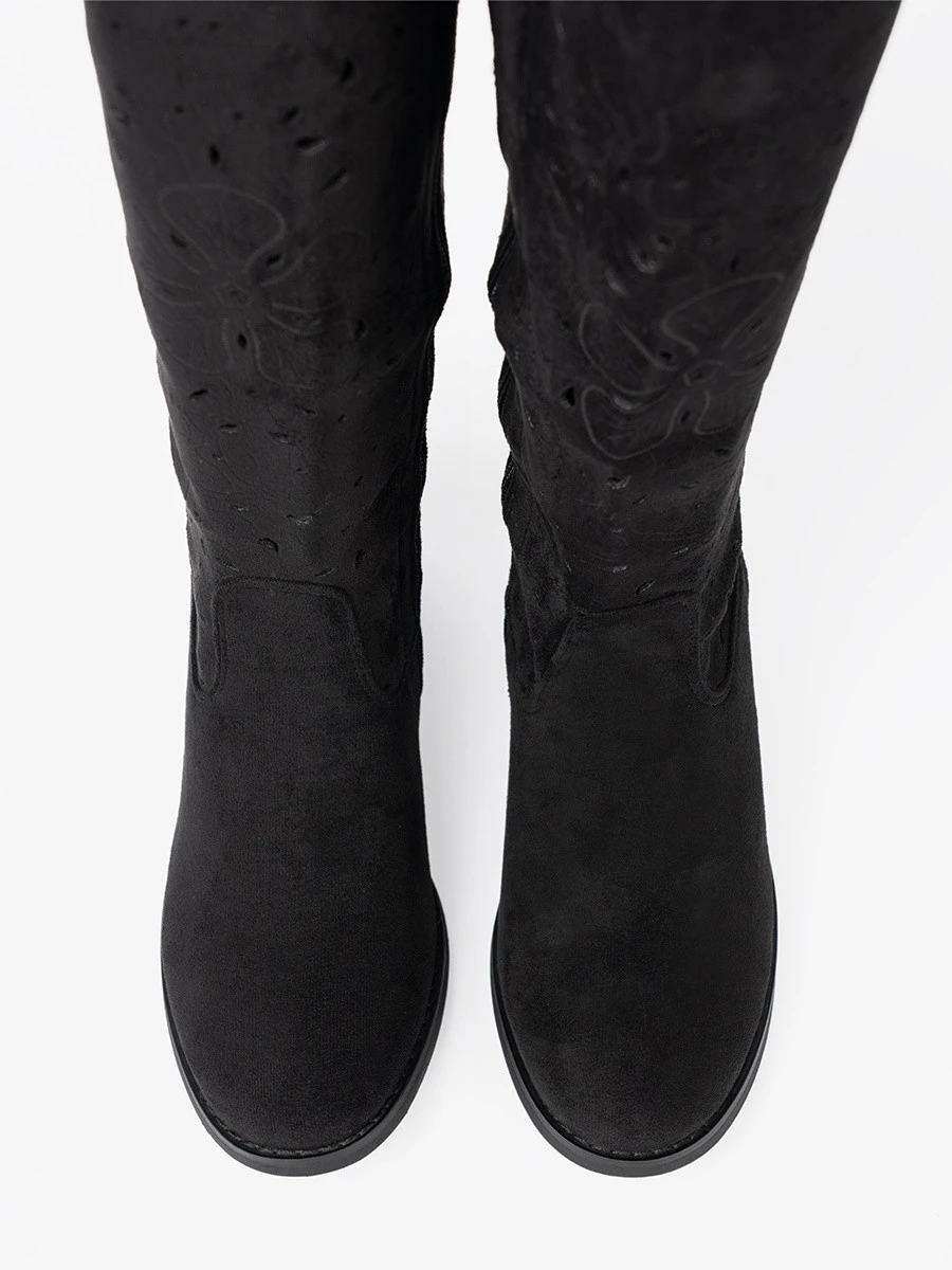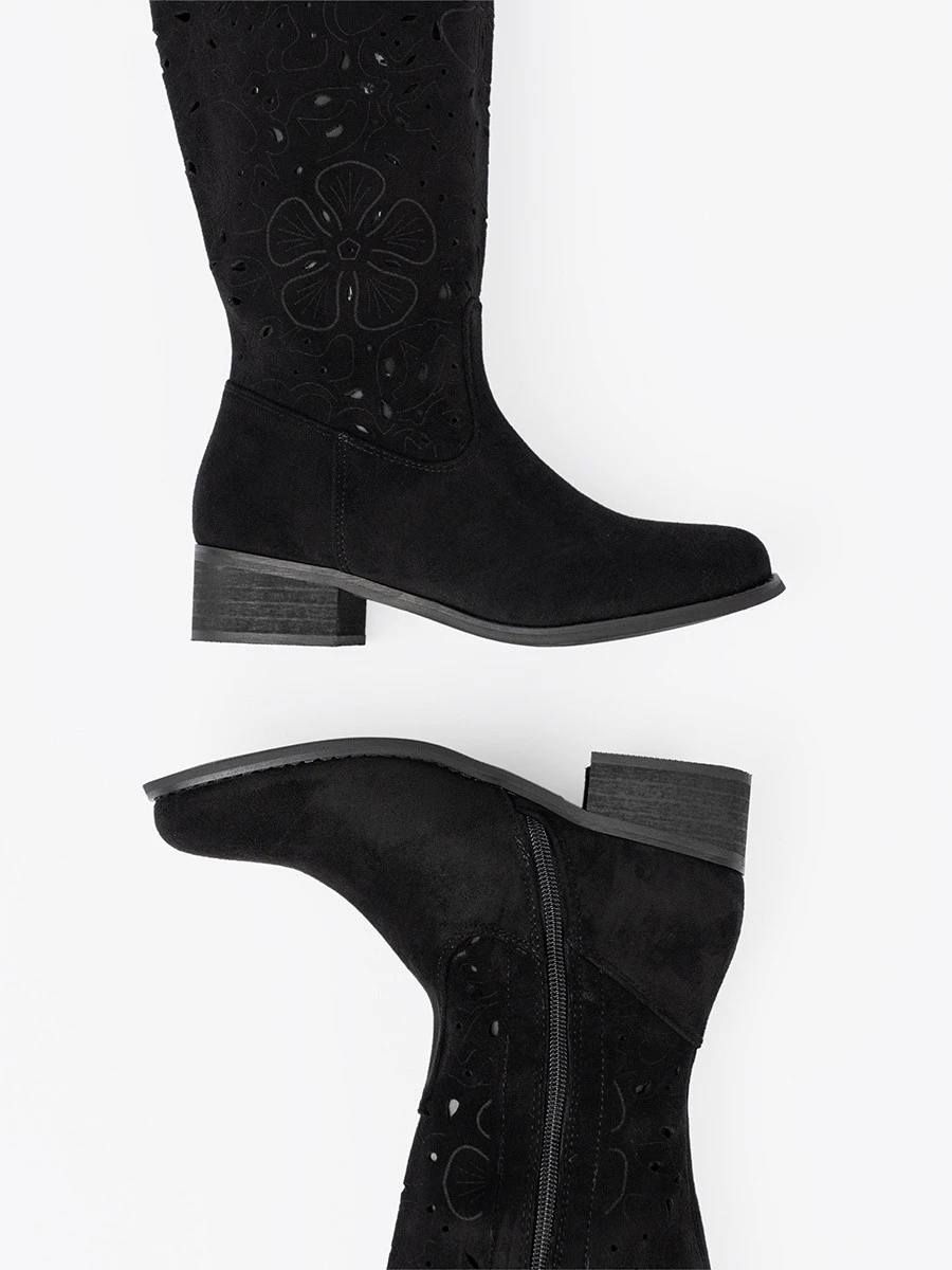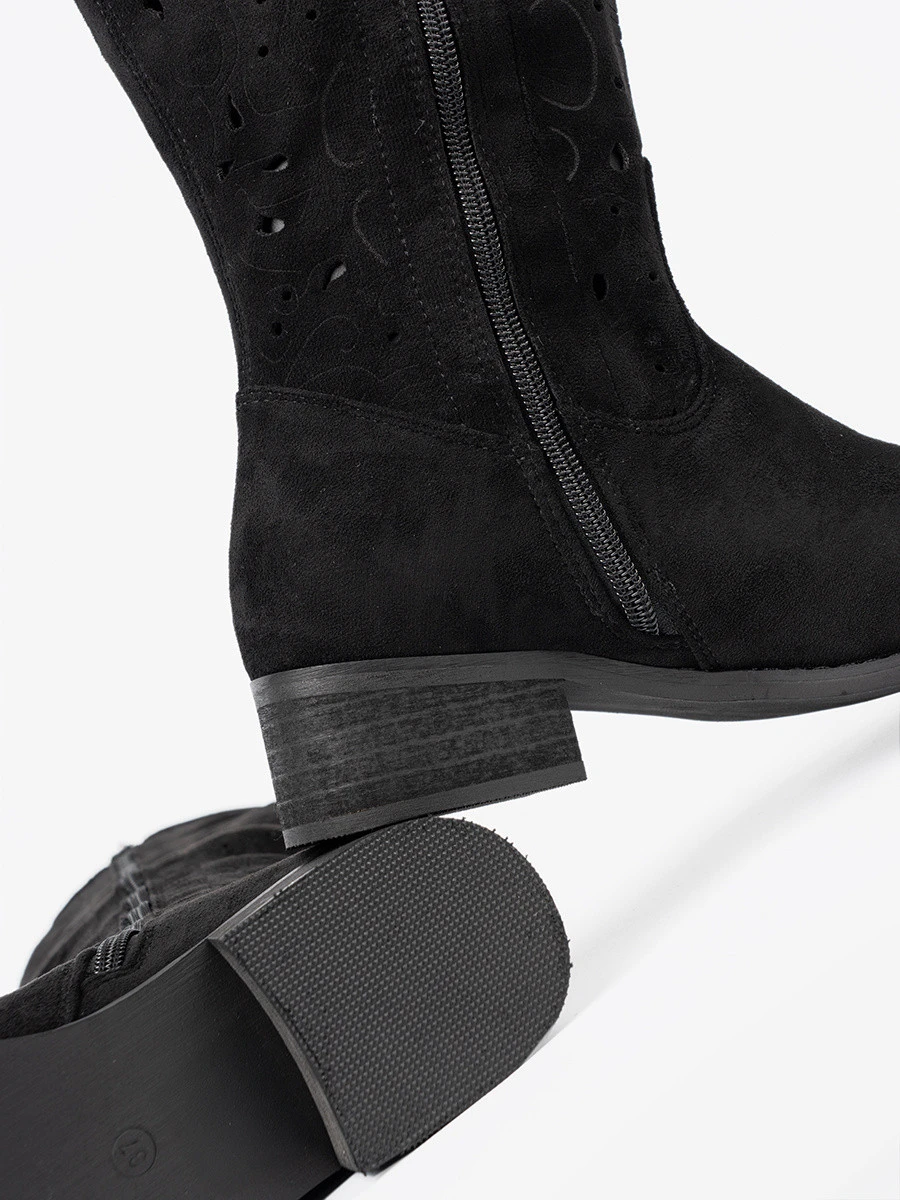 Přidání recenze k Klasické dámské černé kozačky na širokém podpatku