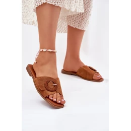 Dámské pantofle na plochém podpatku, vyrobené z eko semiše, jsou elegantní a pohodlnou volbou na teplé dny. Tento model se vyznačuje ozdobnou přezkou, která mu dodává jedinečný charakter. Ideální na každodenní nošení, kombinují jednoduchost s módním akcentem a dokonale ladí s letními stylizacemi. Při výběru velikosti se řiďte tabulkou velikostí.