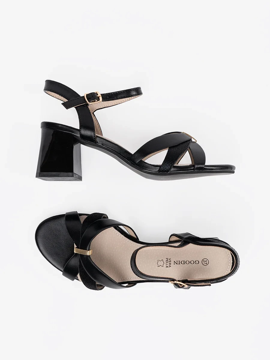 Přidání recenze k Klasické dámské sandály černé na širokém podpatku