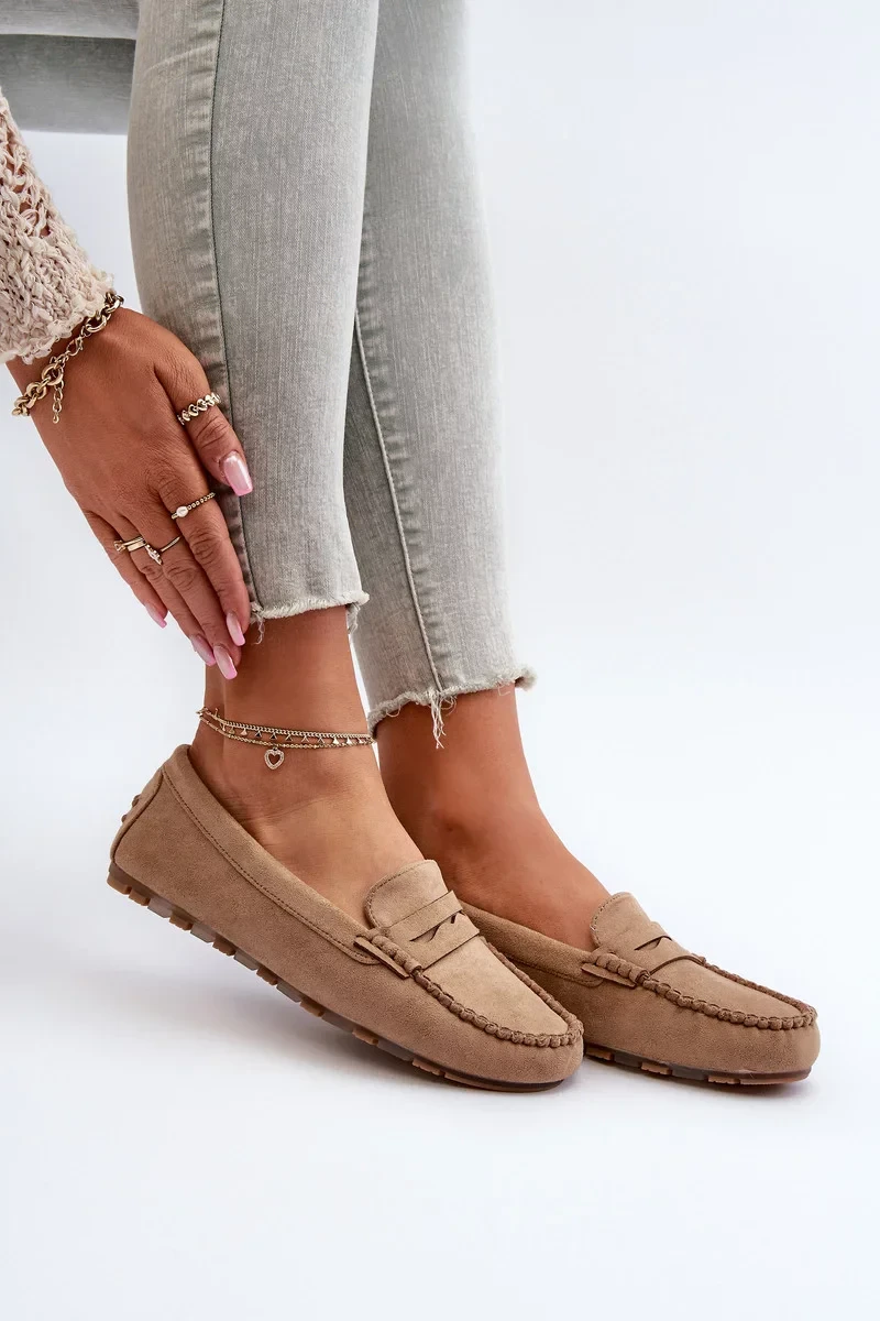 Klasické dámské semišové mokasíny tmavě béžové Glimris