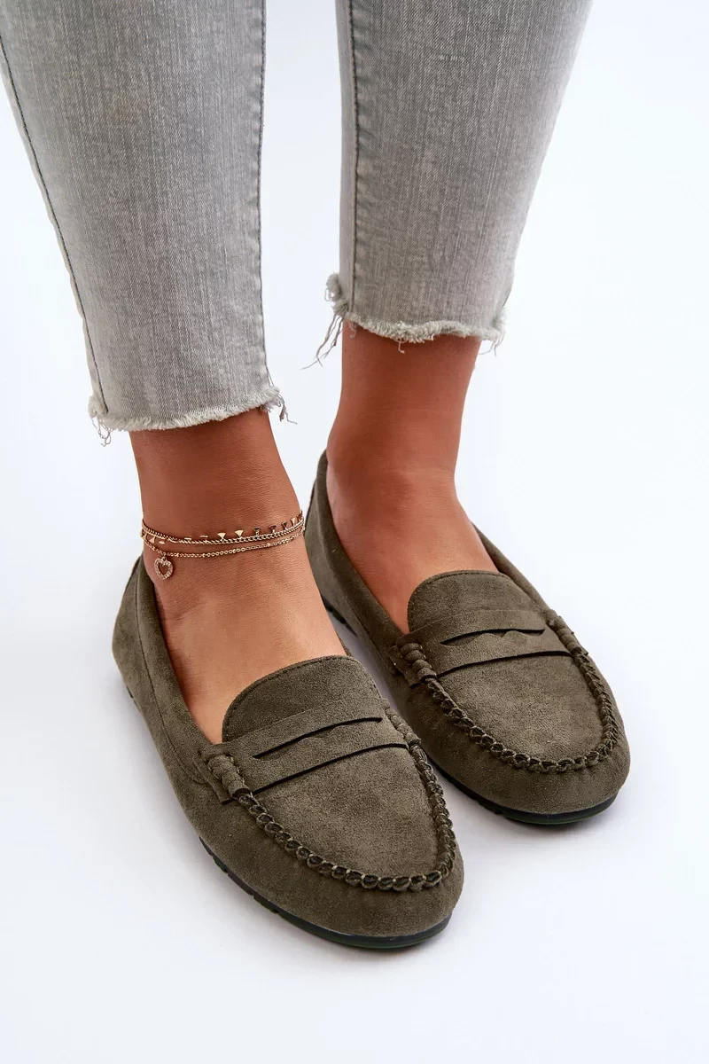 Klasické dámské semišové mokasíny tmavě zelené Glimris