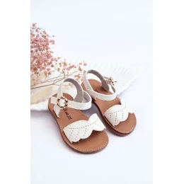Klasické, dětské sandály jsou vyrobeny z eko kůže. Otevřená špička umožní správné proudění vzduchu v obuvi. Zapínání pomocí nastavitelného popruhu s přezkou ve tvaru květiny. Proužek na přední straně je zdoben jemným ažurovým vzorem. Podrážka je vyrobena z gumy a je protiskluzová. Při výběru velikosti se řiďte tabulkou velikostí.