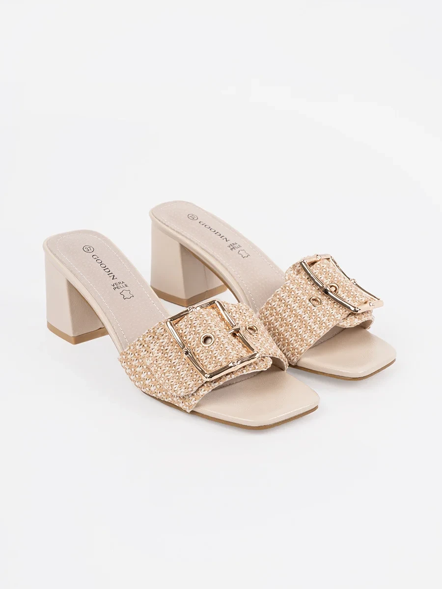 Klasické hnědé dámské nazouváky na širokém podpatku