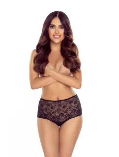 Zadní díl je ozdobený ažurovou krajkou s květinovým motivem. Kalhotky jsou zabalené v elegantní krabičce.