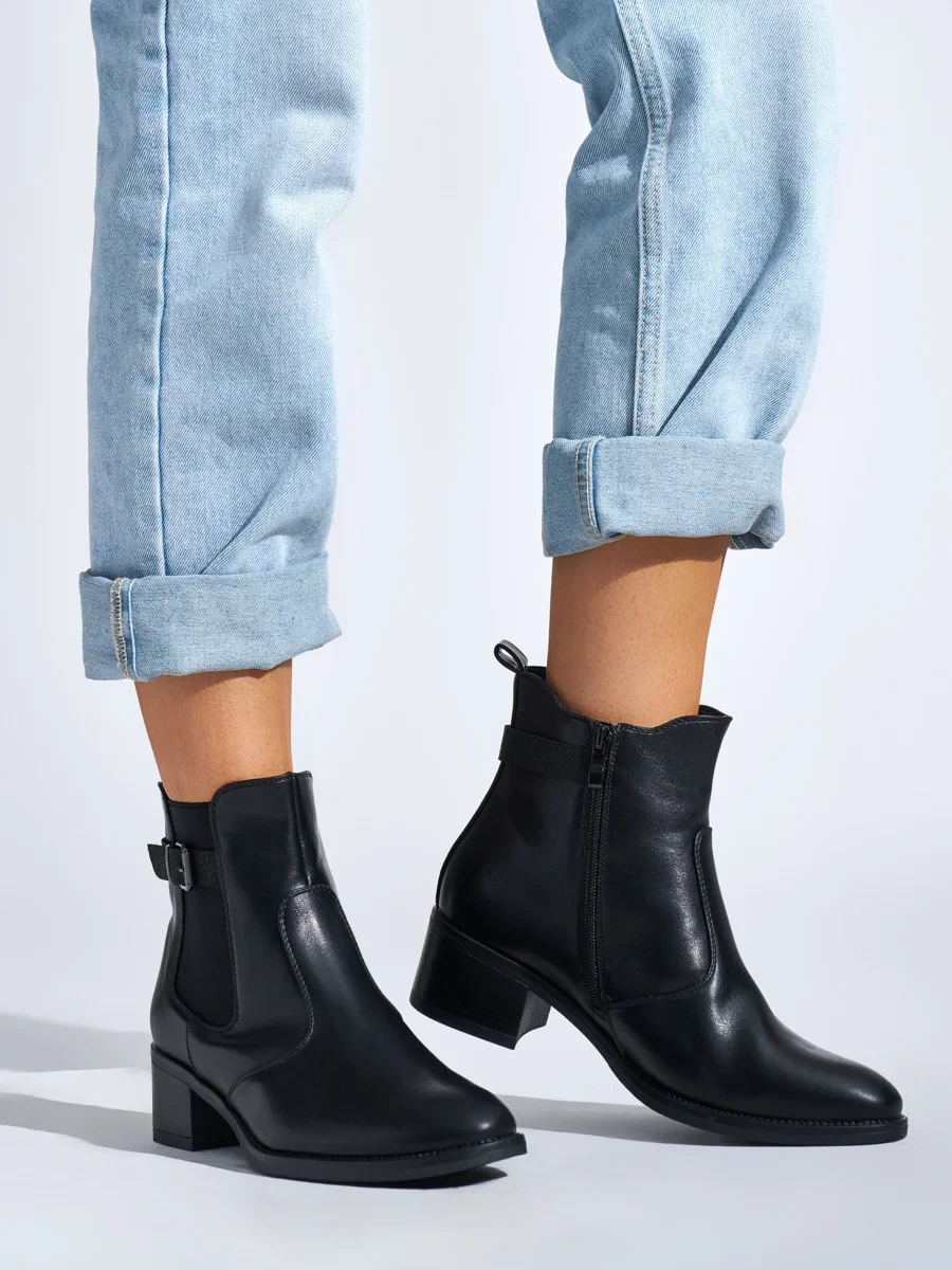 Klasické kotníčkové boty černé dámské na širokém podpatku