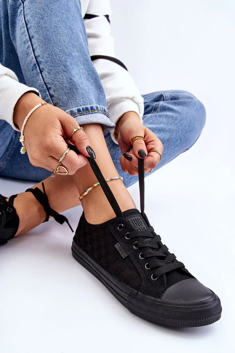 Klasické tenisky Big Star vyrobené z kombinace textilu a plastu. Tento model je extrémně vzdušný. Tenisky jsou posazeny na platformě a protiskluzové podrážce z pryžového materiálu. Tenisky mají klasické šněrování, které vám umožní přizpůsobit obuv šířce chodidla. Ideální pro nadcházející sezónu! Při výběru velikosti se řiďte tabulkou velikostí.
