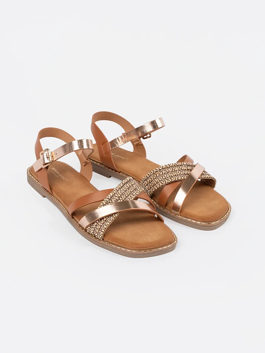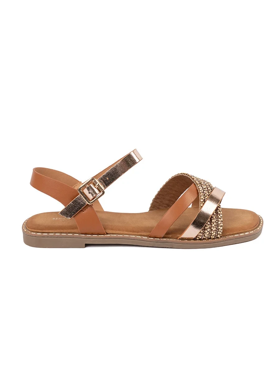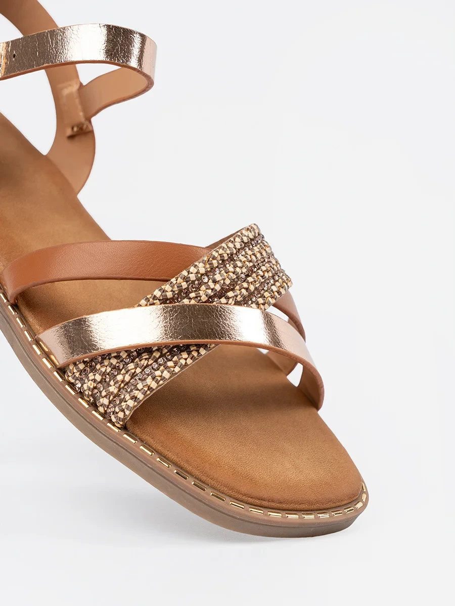 Přidání recenze k Klasické sandály hnědé dámské na plochém podpatku