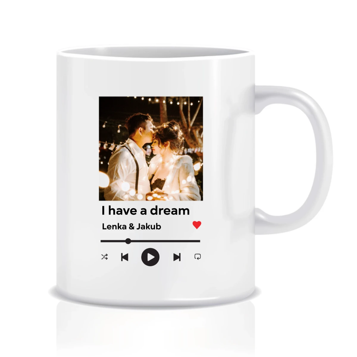 Klasický bílý hrníček s vlastním odkazem na oblíbenou písničku