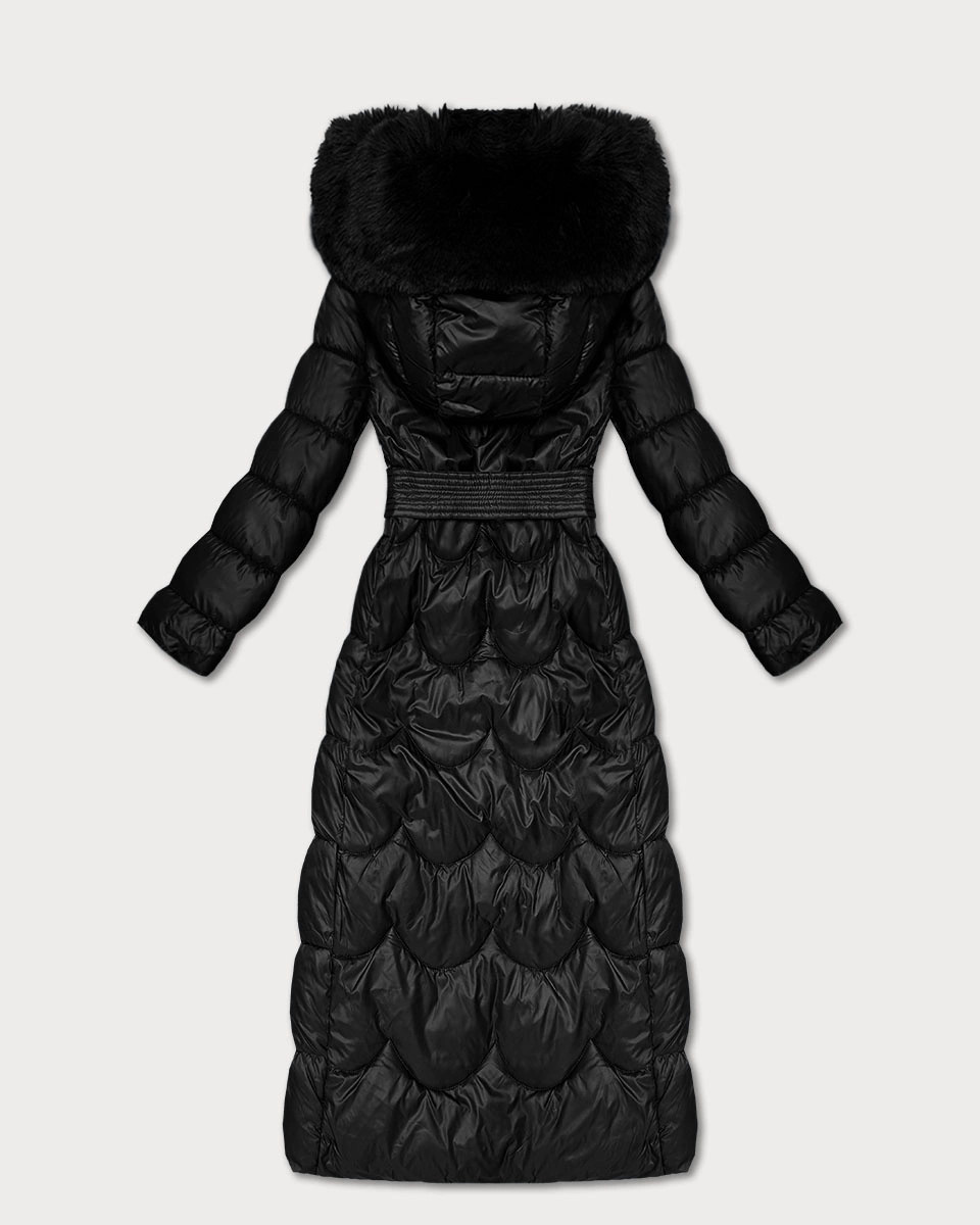 Klasický černý prošívaný kabát s kapucí model 21479164 - MINORITY