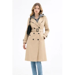 Klasyczny trencz z odpinanym kapturem Goodlookin ciemny beżowy (T2-2252#-5)