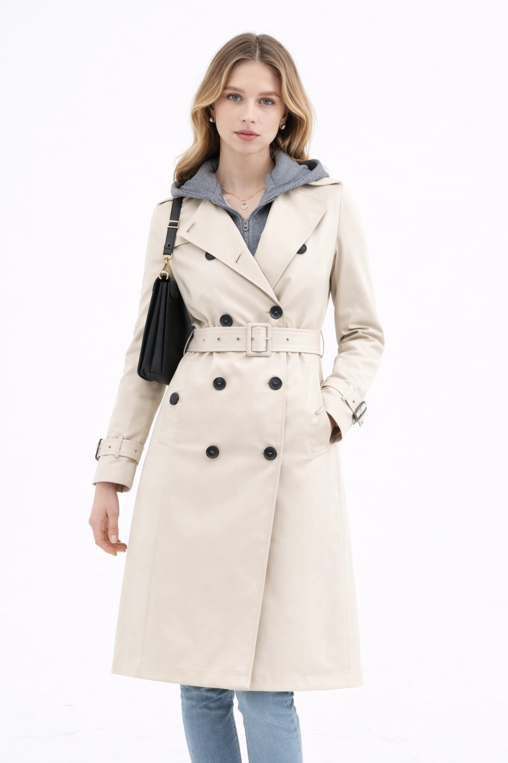 Klasyczny trencz z odpinanym kapturem Goodlookin jasny beżowy (T2-2252#-12)