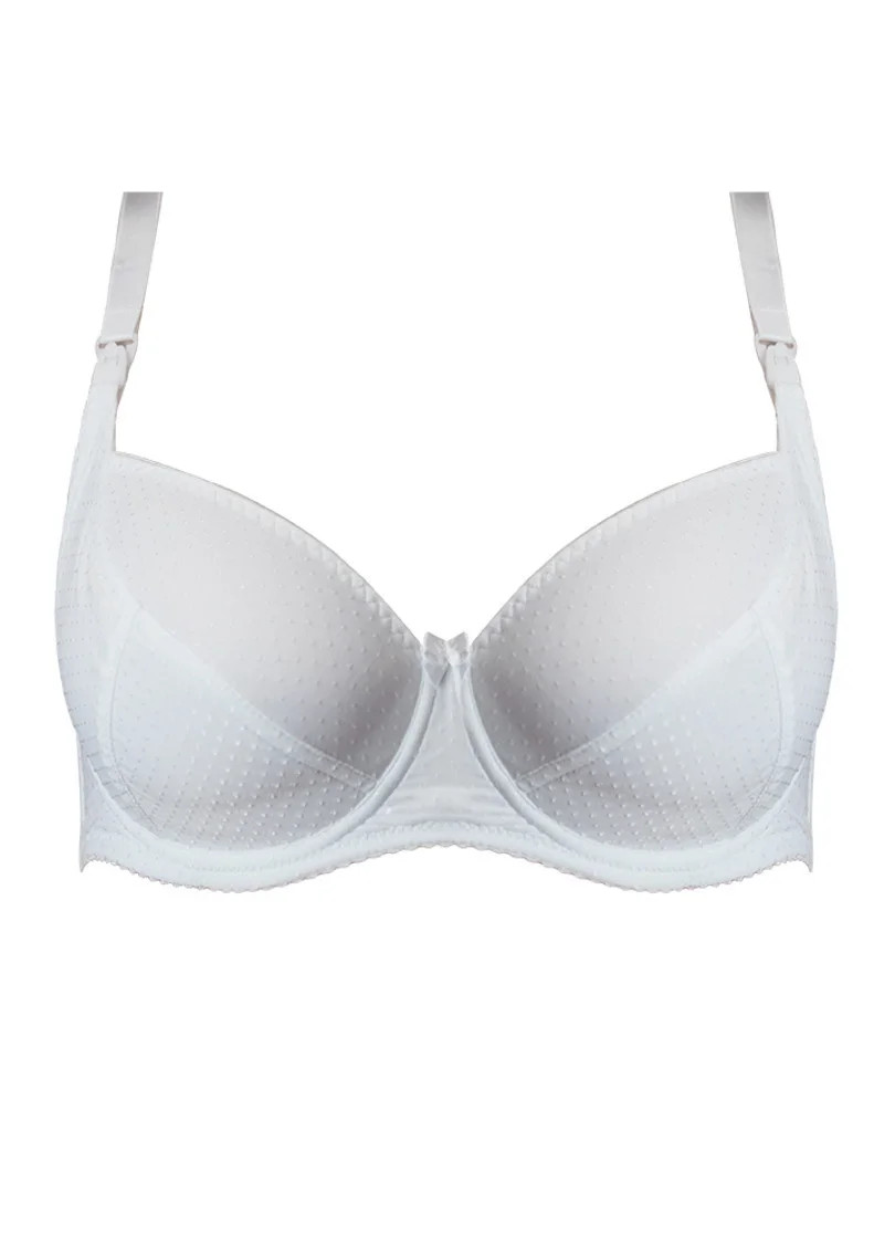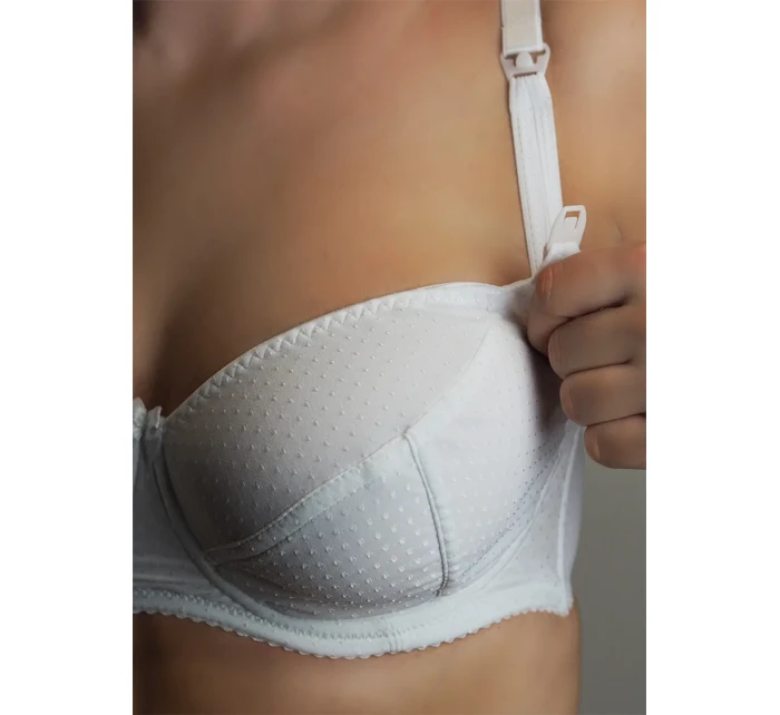 Podprsenka určená pro kojící ženy. Ušitá je z pěkného, jemného materiálu s kosticí. Má pohodlné zapínání košíčků typu Clic-Clack, které umožňuje odepínání a zapínání košíčku jednou rukou a nevyžaduje sundávání celé podprsenky. Složení: 75% bavlna, 17% polyester, 8% elastan.