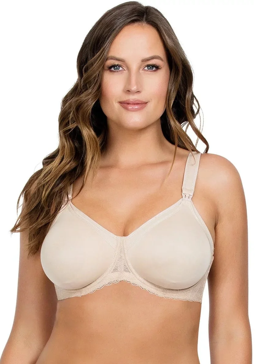 Kojící podprsenka s kosticemi značky Parfait. Dokonale jemná a hladká podprsenka vyrobena z jemného vlákna pro kojící maminky s lehkým a snadným zapínáním košíčků při kojení. Zapínání je na vršku košíčku jednoduchým cvaknutím. Dokonalý střih a vyšší obvod podprsenky zaručí pohodlné nošení po celý den. Obvod podprsenky má boční pružné kostice a je dokrášlen jemnou přizpůsobivou krajkou. Ramínka jsou pevně všitá, lehce délkově nastavitelná, v přední části širší a vypolstrovaná, nebudou se zařezávat a tlačit na kůži. Zadní zapínání je na dva háčky a čtyři pozice.