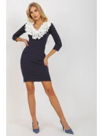 Šaty tužkového střihu s 3/4 rukávy, zapínání na zip. Šaty z hráškové látky s ozdobnou krajkou na přední straně. Ideální pro mnoho příležitostí.
