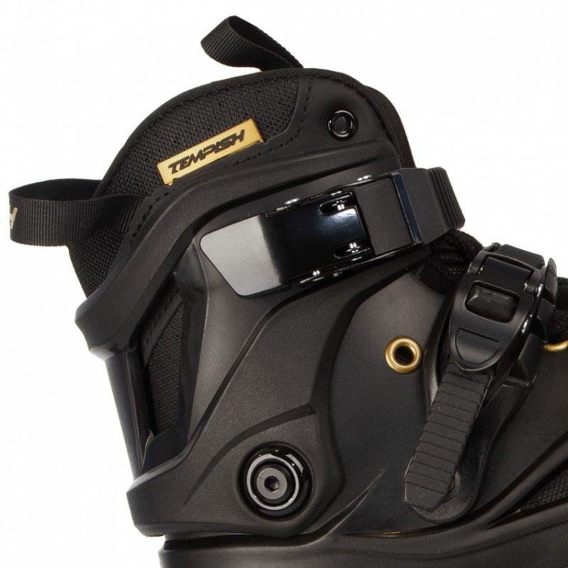 Kolečkové brusle TEMPISH VIBER L.E. 110 Freeskate tvrdý, ale rychlá velká kola o průměru 110 mm jsou ideální kombinací. Roilki navržené jak pro kratší městské trasy, tak pro dlouhé výpravy na stezkách. Tyto kolečkové brusle jsou ideální pro pokročilé a zkušené bruslaře. Díky vysoce kvalitním materiálům a pečlivému zpracování tyto kolečkové brusle zajišťují nejen vynikající výkon, ale také maximální pohodlí a bezpečnost při každé jízdě. Hlavní vlastnosti: Bota: Vyrobena z tvrdého, kompozitního materiálu, zajišťujícího pevné držení nohy a stabilitu během jízdy. Má větranou vložku, která zajišťuje cirkulaci vzduchu a pohodlí. Zapínání: Vybaveno kovovou samosvornou přezkou a systémem mikro přezky na nártu, zajišťující přesné a pohodlné přizpůsobení. Plošina/lišty: Silně zesílený podvozek vyrobený pomocí CNC s možností příčného a podélného nastavení a šrouby namontovanými na pevných hliníkových blocích. Kola: Tři kolečka o průměru 110 mm zajišťující vysokou rychlost a stabilitu. Vyrobené z PUC, s tvrdostí 85A, nabízejí vynikající přilnavost a trvanlivost. Ložiska: Vysoce kvalitní chromovaná ABEC-9 s gumovým krytem usnadňujícím čištění a údržbu. Přizpůsobení: Možná výměna plastových vnějších chráničů a nártního pásu. Existuje možnost namontování menších koleček v podvozku (minimální doporučená velikost 90 mm). Vložka: Větraná vložka s neoprenovou oblastí prstů pro zvýšené pohodlí. Elastická smyčka na jazyku usnadňuje obouvání. Kolečkové brusle TEMPISH VIBER L.E. 110 jsou vynikající volbou pro pokročilé bruslaře hledající kombinaci odolnosti, stability a rychlosti. Jejich solidní konstrukce, inovativní technologická řešení a možnost personalizace z nich činí ideální volbu jak pro městské výlety, tak pro dlouhé trasy na stezkách. TECHNICKÉ PARAMETRY Určení Jízda po ulici (městská) a freestyle, pokročilí a zkušení jezdci. Plocha NC dodatečně zesílená, jednodílná, nastavitelná příčně a podélně Velikost kolečka 110 mm Tvrdost kolečka 85A Ložiska 608, ABEC 9 Systém vázání FitGo Typ | Skořepina boty Tvrdý kompozit Vložka (vnitřní ponožka) Tenký nylon, absorpční mikrovlákno. Pod výstelkou v části paty je tlumicí tichý blok vyrobený z materiálu TPR, který dokonale tlumí vibrace a otřesy, je poměrně silný, měkký a pohodlný. Brzda Brzdový zámek Horní přezka Spona Zámek 45 stupňů Spona Osy 6mm Hmotnostní limit 100 kg