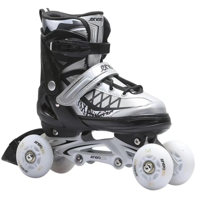 Kolečkové brusle 4 v 1ENERO PRO LED se vyznačují velmi dobrými jízdními vlastnostmi, a to díky lehkým hliníkovým skluznicím a spolehlivému systému zapínání na 3 přezky, který se skládá z nastavitelné přezky Quick Lock, pásku na suchý zip a tkaniček, které pevně drží nohy na místě. Díky tomu všemu se tento model dobře osvědčuje za všech podmínek a poskytuje jedinečný zážitek z jízdy v každé ze svých 4 podob. Jejich vysoká kvalita zaručuje dlouhou životnost a odolnost vůči mechanickému poškození. Kolečkové brusle 4 v 1 ENERO PRO LED zaručují čistý požitek z jízdy.