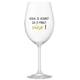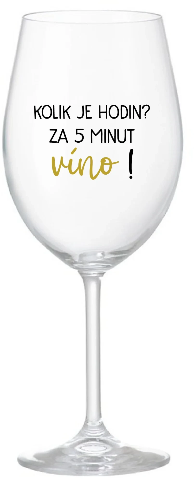 KOLIK JE HODIN? ZA 5 MINUT VÍNO! - čirá sklenice na víno 350 ml