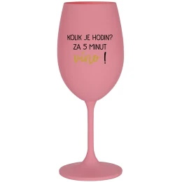 KOLIK JE HODIN? ZA 5 MINUT VÍNO! - růžová sklenice na víno 350 ml