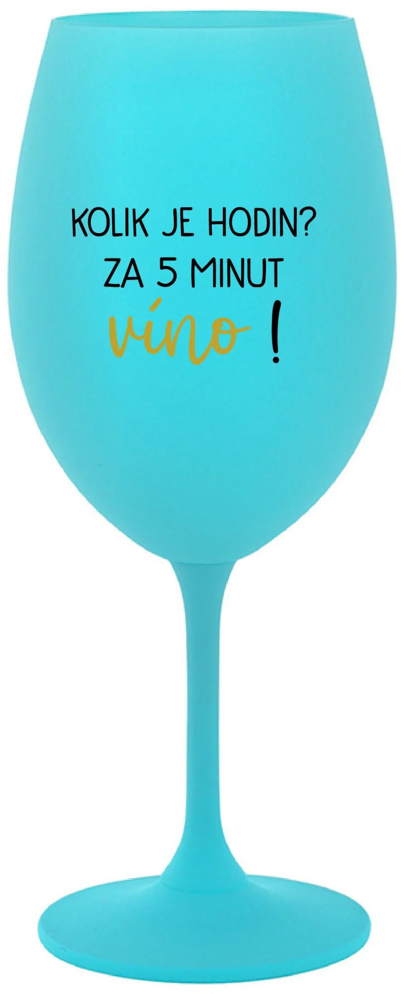 KOLIK JE HODIN? ZA 5 MINUT VÍNO! - tyrkysová sklenice na víno 350 ml