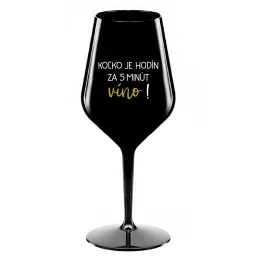 KOĽKO JE HODÍN? ZA 5 MINÚT VÍNO! - čierny nerozbitný pohár na víno 470 ml