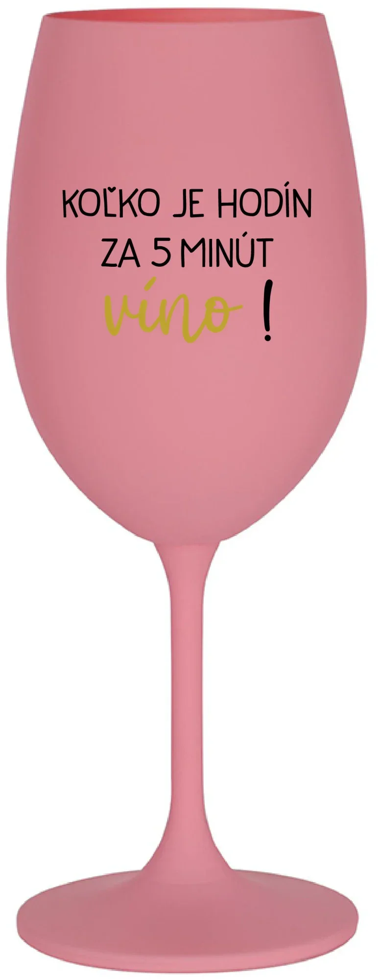 KOĽKO JE HODÍN? ZA 5 MINÚT VÍNO! - ružový pohár na víno 350 ml