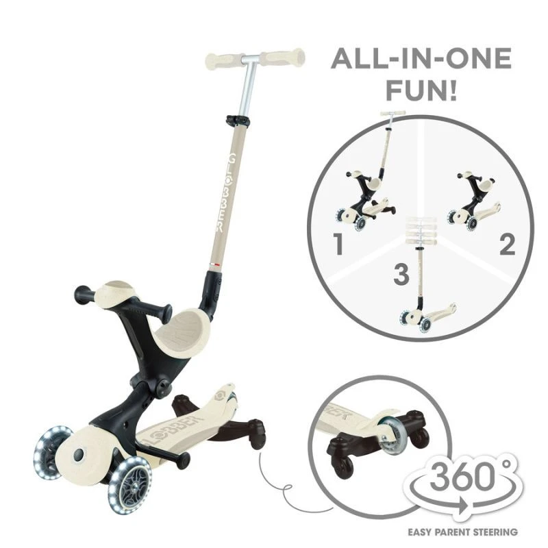 Multifunkční koloběžka se sedátkem, vyrobená ze 100% plastu GRS