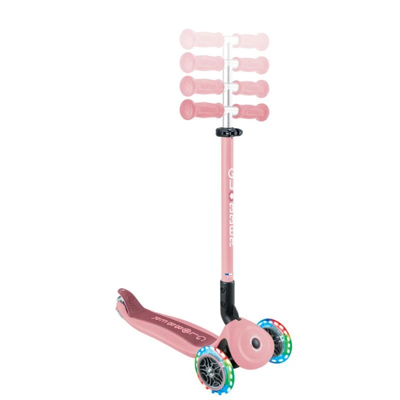 GO - UP Active Lights ECOLOGIC je vybavena patentovaným systémem uzamykání řídítek Globber, který blokuje přední kolečka koloběžky tak, aby se pohybovala pouze dopředu a dozadu, takže děti získají při jízdě na koloběžce jistotu a zároveň si procvičují rovnováhu.