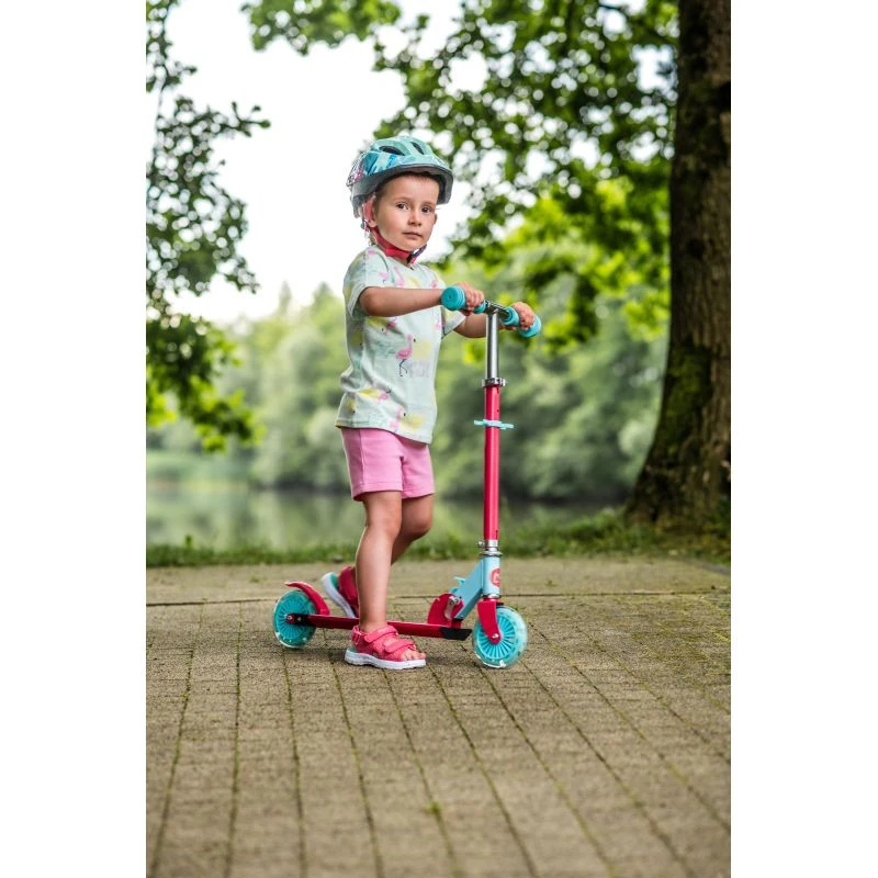 Juniorská koloběžka ARBOOM od společnosti Coolslide je určena pro rekreační jízdu dětí, které zvládly základy jízdy na koloběžce. Hliníková platforma v kombinaci s ocelovým rámem zajišťuje, že výrobek je odolný a vydrží déle. Gumové rukojeti zajišťují lepší úchop. Představený model má nastavitelná řídítka, která lze sklopit, a možnost sklopení rukojetí. Další výhodou koloběžky ARBOOM jsou LED světla instalovaná v kolečkách, díky kterým bude vaše dítě večer lépe vidět.
